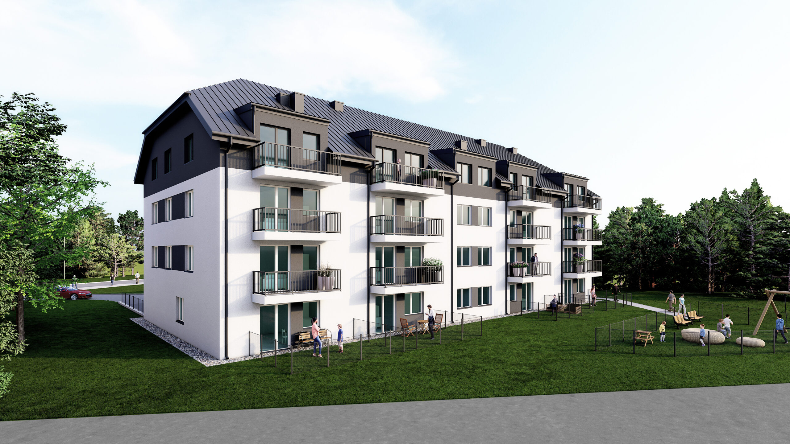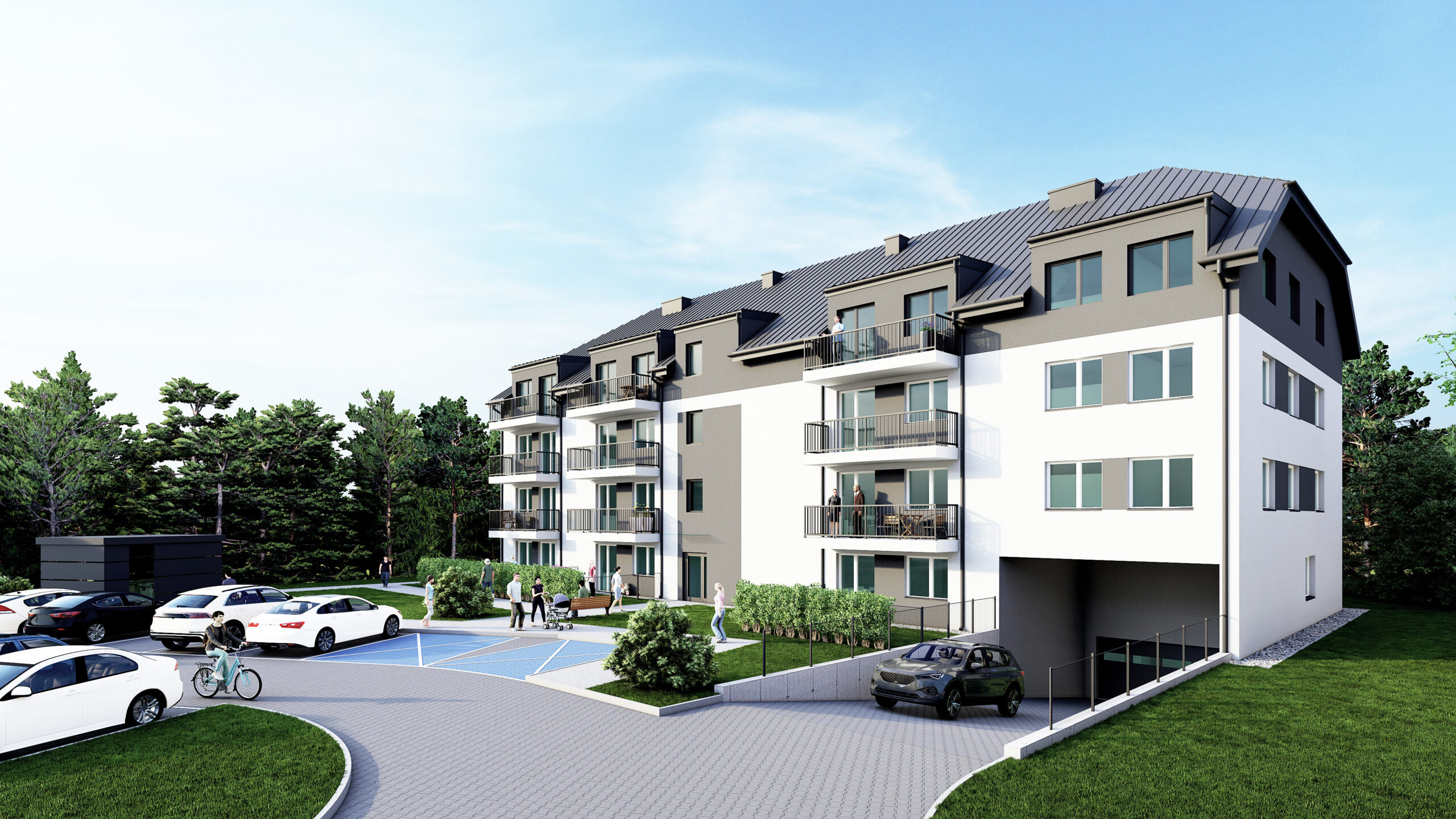 - Budowę jednego budynku mieszkalnego wielorodzinnego trzyklatkowego (4 kondygnacje nadziemne i jedna podziemna) składającego się łącznie z 28 mieszkań o zakładanej łącznej powierzchni użytkowej mieszkań 1297,01 m2 wraz z garażem podziemnym na 12 miejsc oraz 16 miejscami postojowymi naziemnymi.